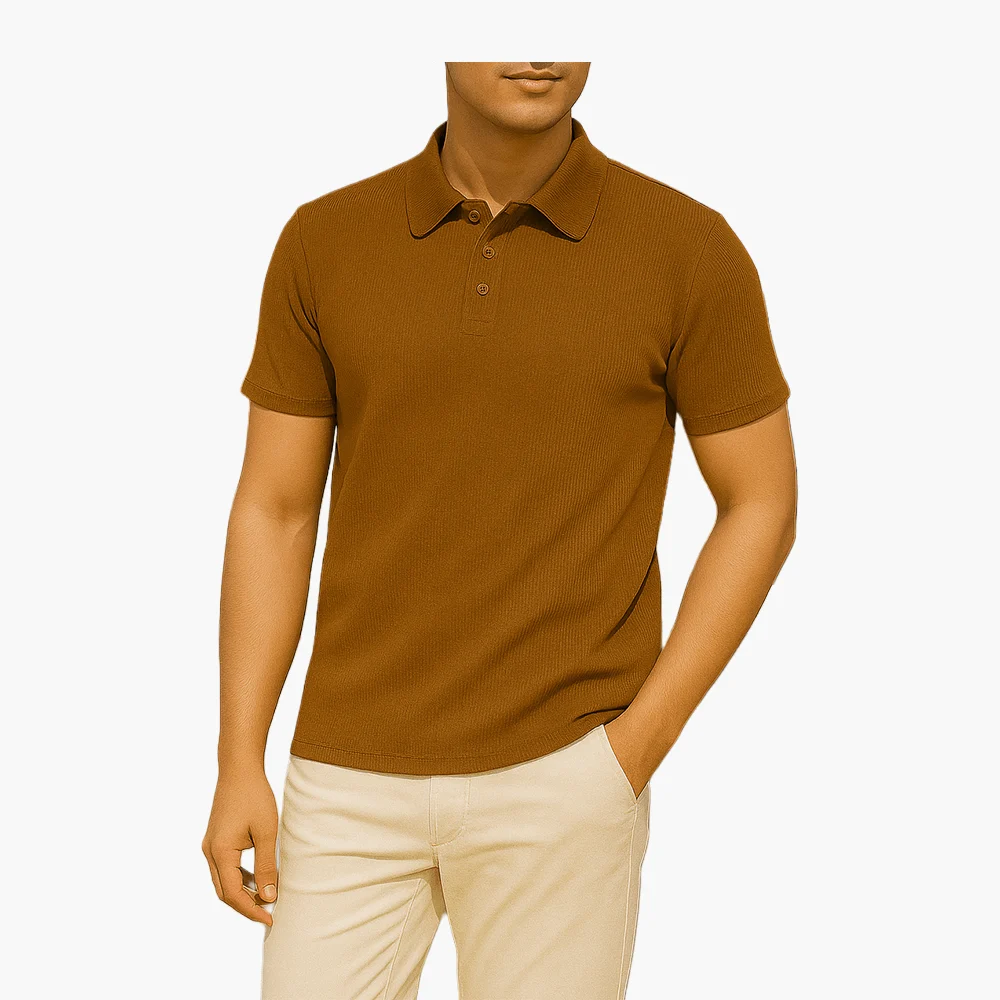 BROWN WAFFLE KNITTED TEXTURED POLO SHIRT
